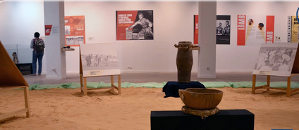 Les visiteurs découvrent les origines de la lutte sénégalaise grâce à des archives sonores et iconographiques issues de la Radiodiffusion télévision sénégalaise (RTS), de la direction de la Cinématographie et de l’Audiovisuel, ainsi que de l’IFAN.