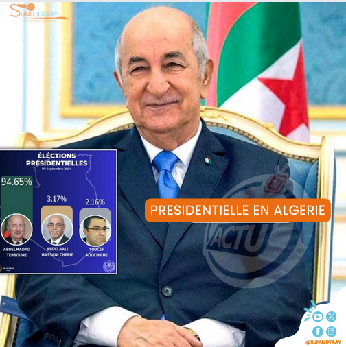 Le président sortant Abdelmadjid Tebboune réélu avec 94,65% des voix.