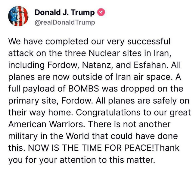 Trump a annoncé une « pleine charge de bombes » sur le site de Fordo, près de Téhéran.