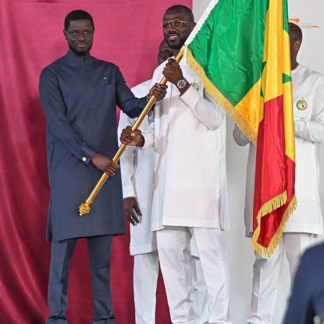 Il a remis le drapeau national aux Lions du Sénégal.